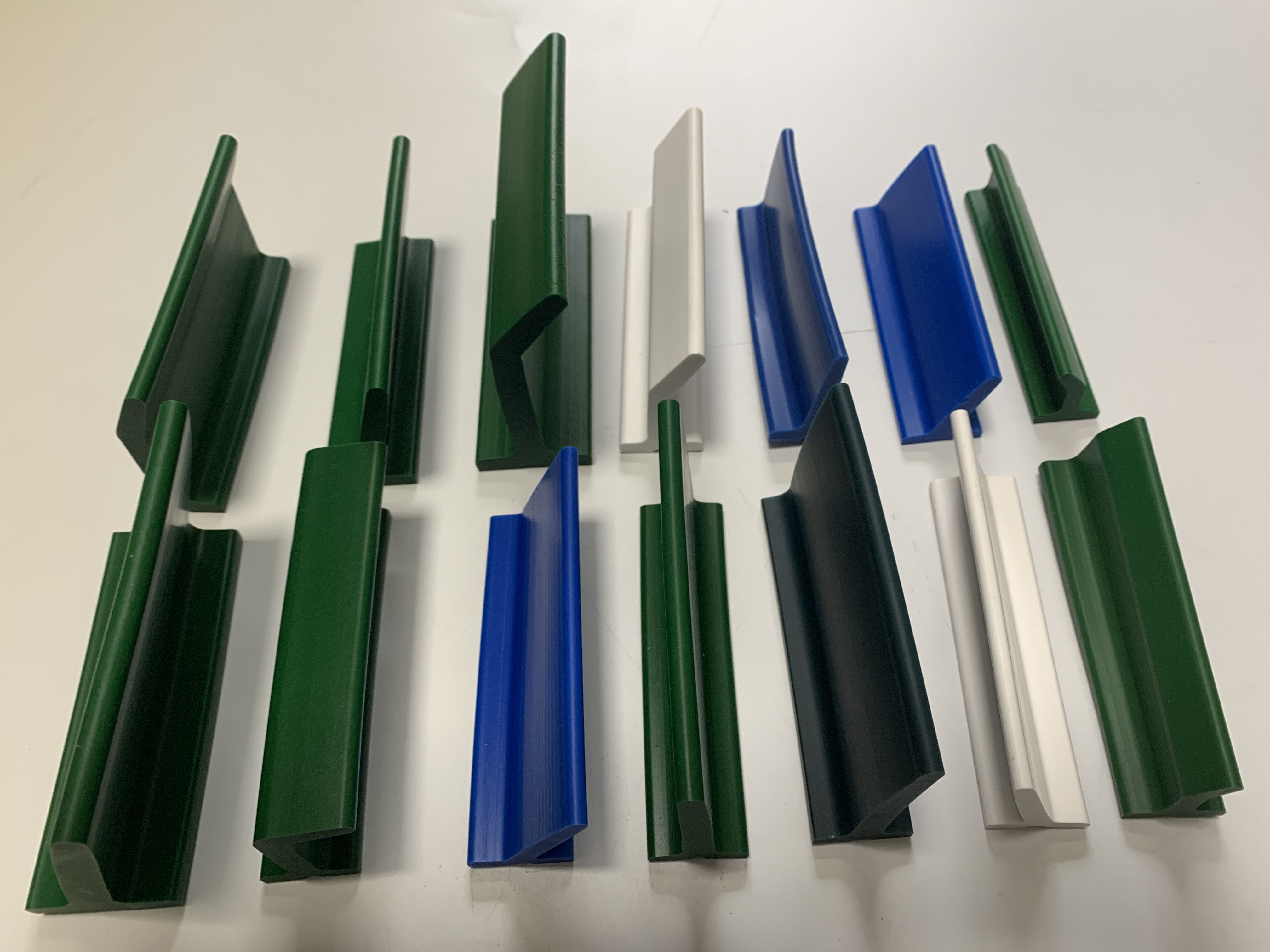 Las guías, perfiles, listones y flancos que fabricamos son principalmente de PVC y Poliuretano colocados sobre correas.Es flexible, resistente a la compresión para elevar, contener, guiar, dividir, etc. Los perfiles están disponibles en una amplia variedad de alturas.